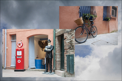 | Below: The result of dragging & dropping Layers 3, 5 and 6 to sit between Layer 2 and the background Layer, parts of each image is now masked by the over lapping layers above. | ||