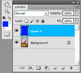 Option 1 : To alter the colour of the sky In the Layers palette, make a new Layer above the Background layer. Make the Foreground Colour the shade you need. (In this example I'm going for a blue sky). Fill the new Layer (Edit > Fill > Use > Foreground > OK) with the colour. |